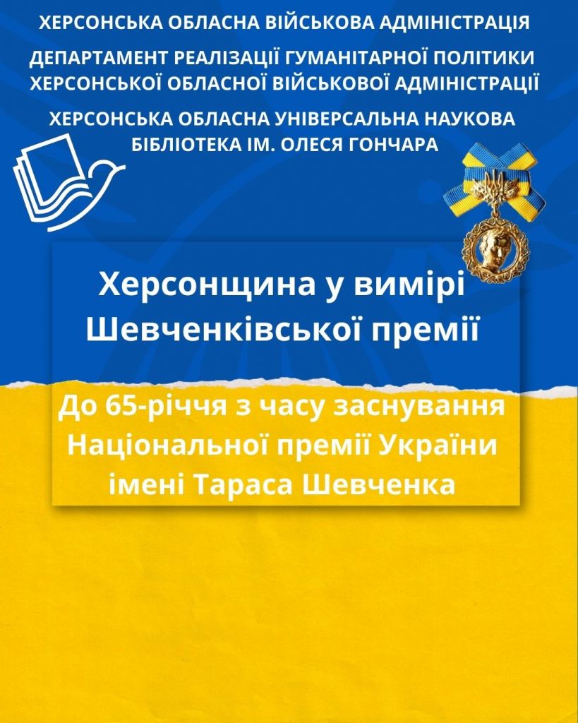 Це видання є спробою зібрати, упорядкувати й подати в цілісному форматі інформацію про митців, чиє життя пов’язане з Херсонщиною, а творчі здобутки відзначені найвищою державною нагородою – Національною премією України імені Тараса Шевченка.