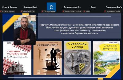 До четвертого року повномасштабної війни росії проти України фахівці відділу краєзнавства нашої Гончарівки провели патріотичну годину «Нескорена Херсонщина: чотири роки мистецького спротиву» для учнів старших класів Херсонського наукового ліцею.